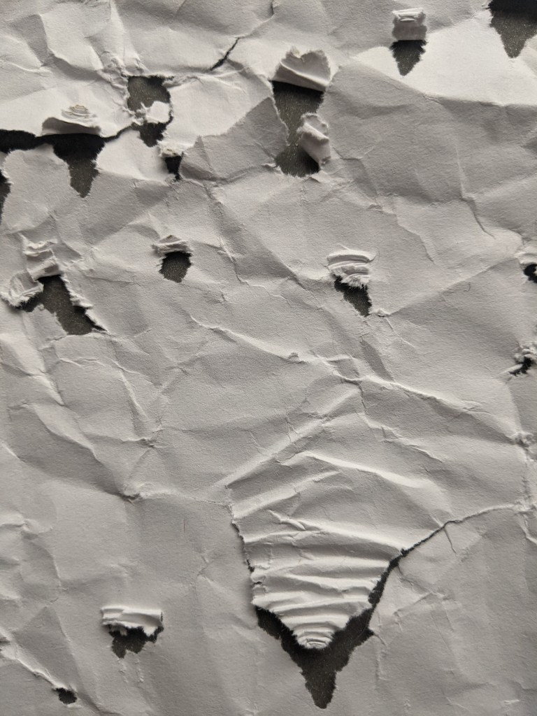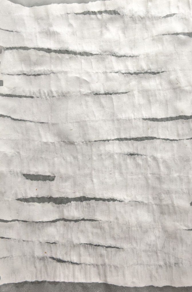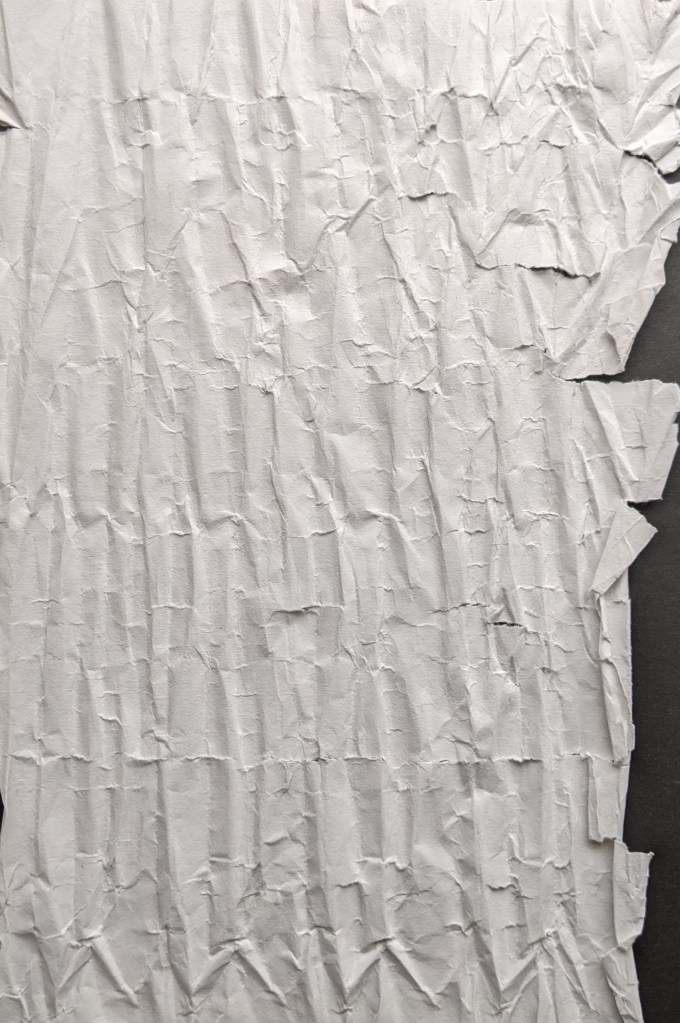 Essentially, assignment two involved moving from our initial drawings into stitching. One project had us creating base papers for our stitched interpretations of previous drawings. We had to manipulate paper using a variety of techniques. Most of the paper I used for this exercise was A4 in size, I stuck to watercolour and copier paper.