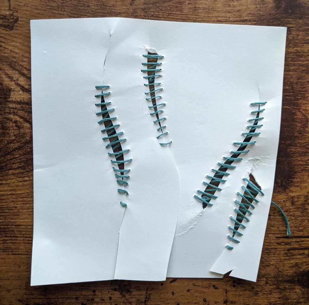 Using those prepared samples we had to cut the papers into smaller pieces to stitch on.