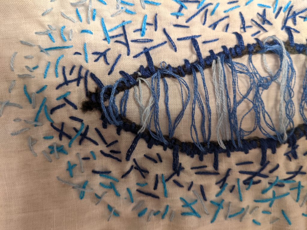 The final step was to take a drawing and use it as inspiration for three sewn pieces using elements that we’d touched on in the previous steps.